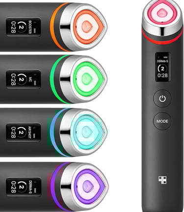 Mode 2 (EMS + RF + LED): Cheeks and under-eye area. Circular motions, lifting upward. The warmth feels incredible. 2 minutes per cheek.